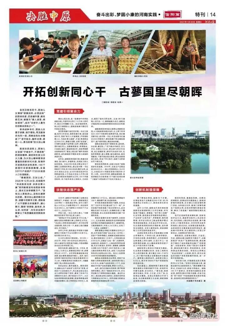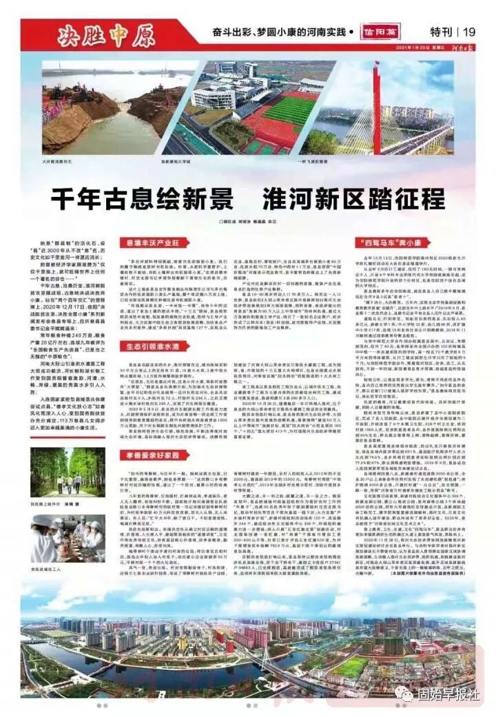 在极不平凡的2020年,信阳全力打好疫情防控阻击战,牢牢守住了河南“南大门”;扎实做好“六稳”“六保”工作,全年经济发展稳中有升,预计地区生产总值同比增长2%左右,固定资产投资、规模以上工业企业增加值、社会消费品零售总额、一般公共预算收入增幅达到全省平均水平。