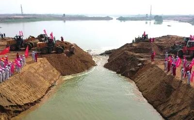 2020年10月26日,随着最后一车石料倾入淮河,位于息县的大别山革命老区引淮供水灌溉工程成功实现截流。