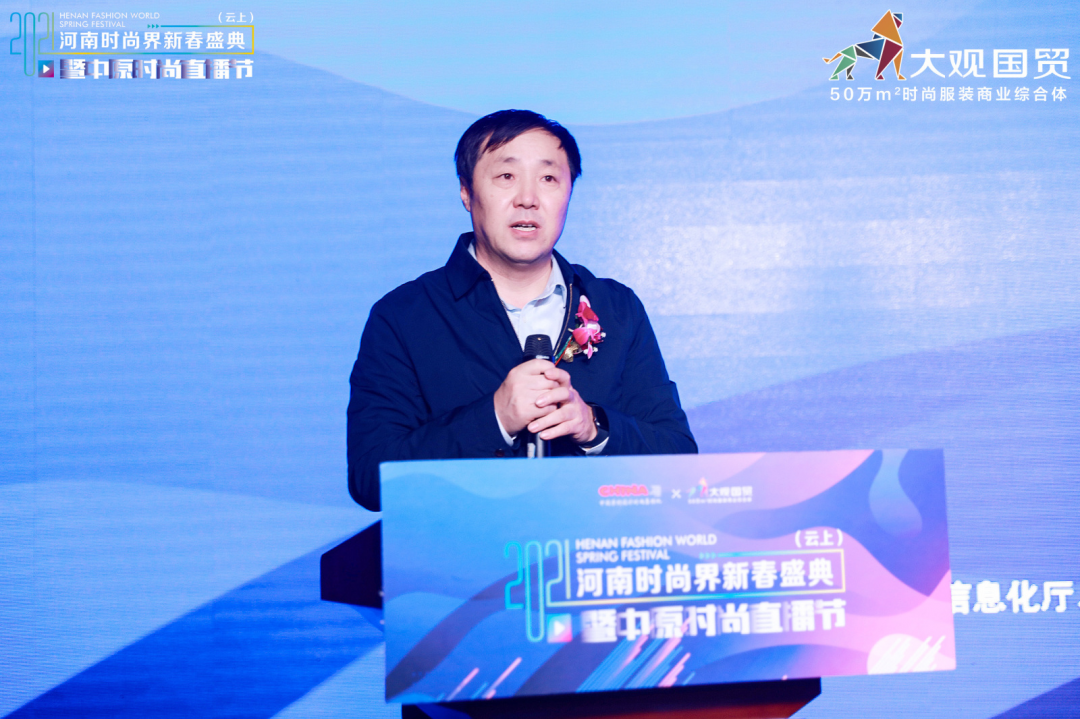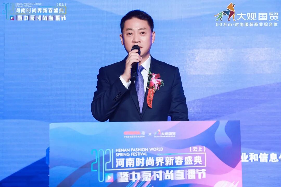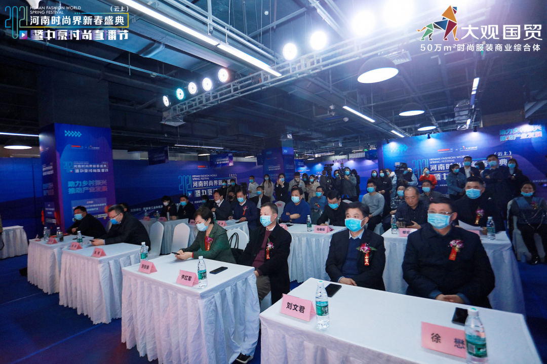 1月16日下午,由河南省商务厅主办,河南省工业和信息化厅、河南省教育厅、河南广播电视台卫星频道支持,河南省服装行业协会、郑州大观国贸承办,西平县人民政府协办的2021河南时尚界新春盛典(云上)暨中原时尚直播活动在大观国贸A座5楼举行。根据疫情防控相关要求,本次盛会主要以“云上”方式呈现,河南省商务厅副厅长高翔、电子商务处处长孙琪,省扶贫开发办公室社会扶贫处处长李红军、省妇女联合会发展部部长张俊美,长垣市委常委、副市长刘文君,淮滨县委常委、统战部长、产业集聚区党工委书记徐懋,光山县委常委、统战部长张欣,罗山县人民政府副县长冯伦应,潢川县人民政府副县长李浩,长垣市政协副主席陶忠民,光山县政协副主席、工商联主席鄢祖华,西平县产业集聚区常务副主任朱晓燕,郑州市管城回族区南关街街道办事处主任丁朝昔,省广播电视台卫星频道副总监、广电卫视传媒有限公司总经理宋阳,河南卫视著名主持人关枫,郑州大观国贸总经理马朝明等参会。新华网、中新社、央广网、河南日报、河南电视台、凤凰网等四十余家媒体报道,在线人数超200万人,全国时尚界人士相聚云端,共享盛宴。