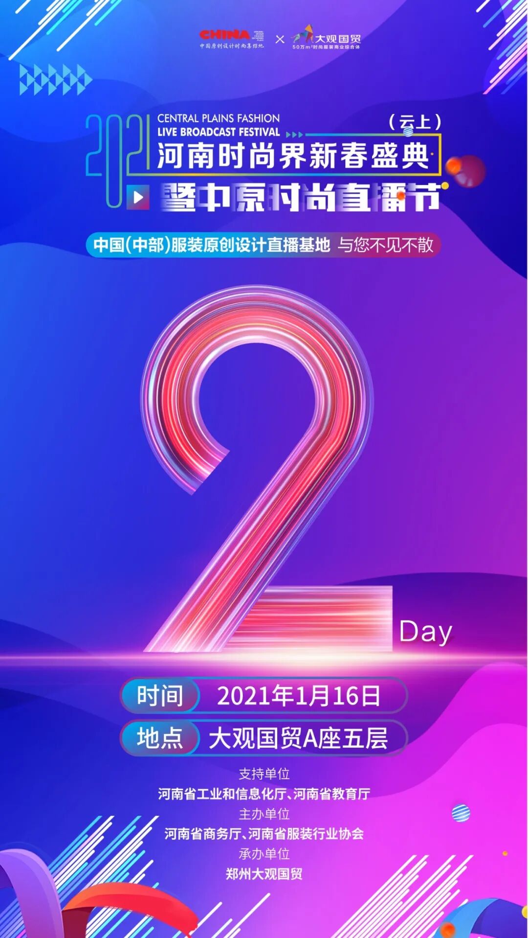 今年,由河南省商务厅、河南省服装行业协会联合举办的“2021河南时尚界新春盛典(云上)暨中原时尚直播节”活动将于1月16日在郑州大观国贸举办。