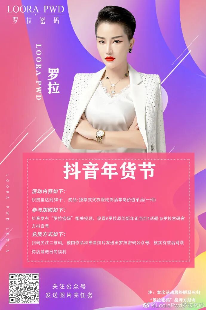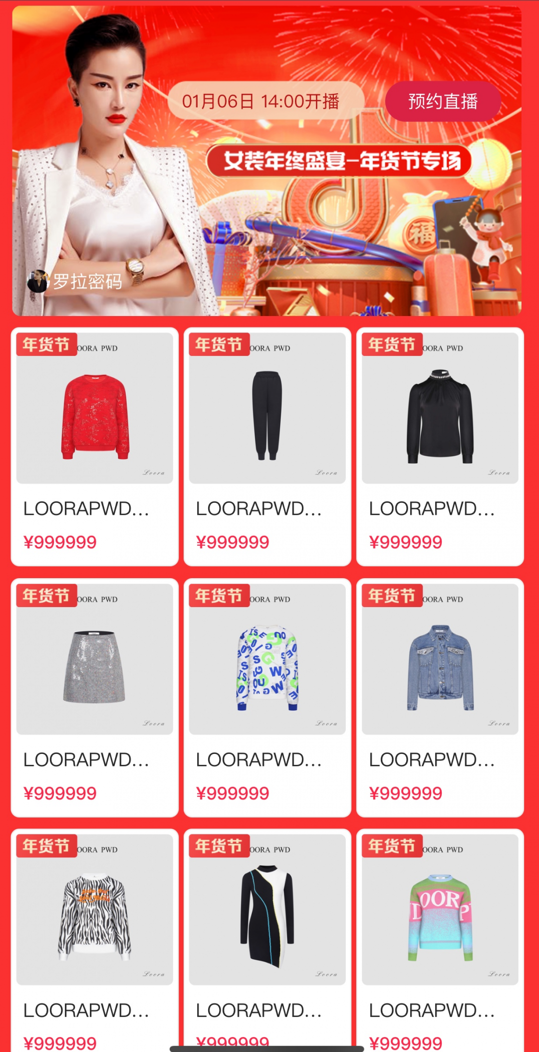 年货抢先买,礼品带回家~1月6日14:00,时尚女王罗拉将带着“用服装、启真我”的LOORA PWD在抖音为大家带来女装年终盛宴。