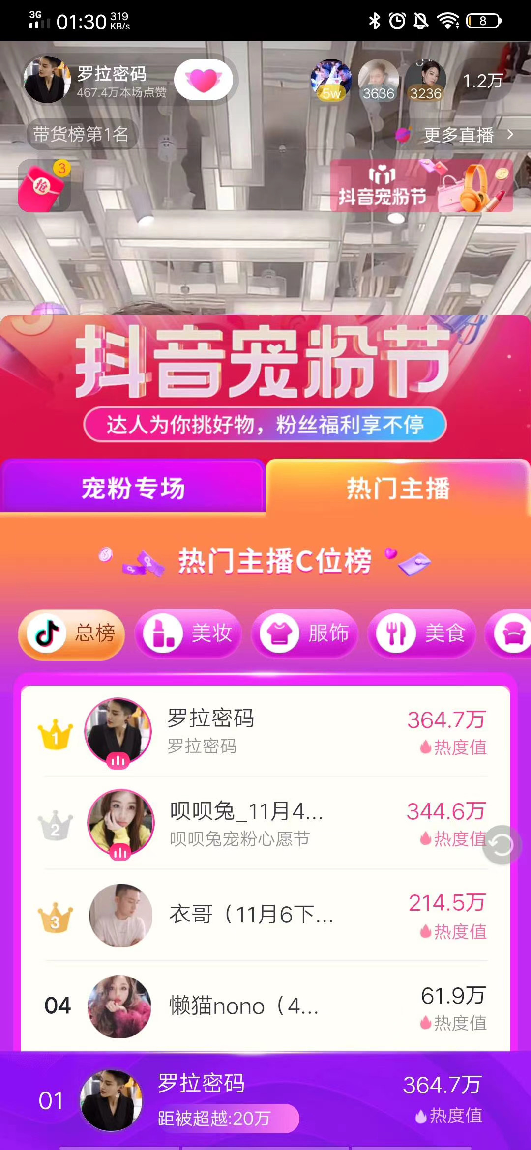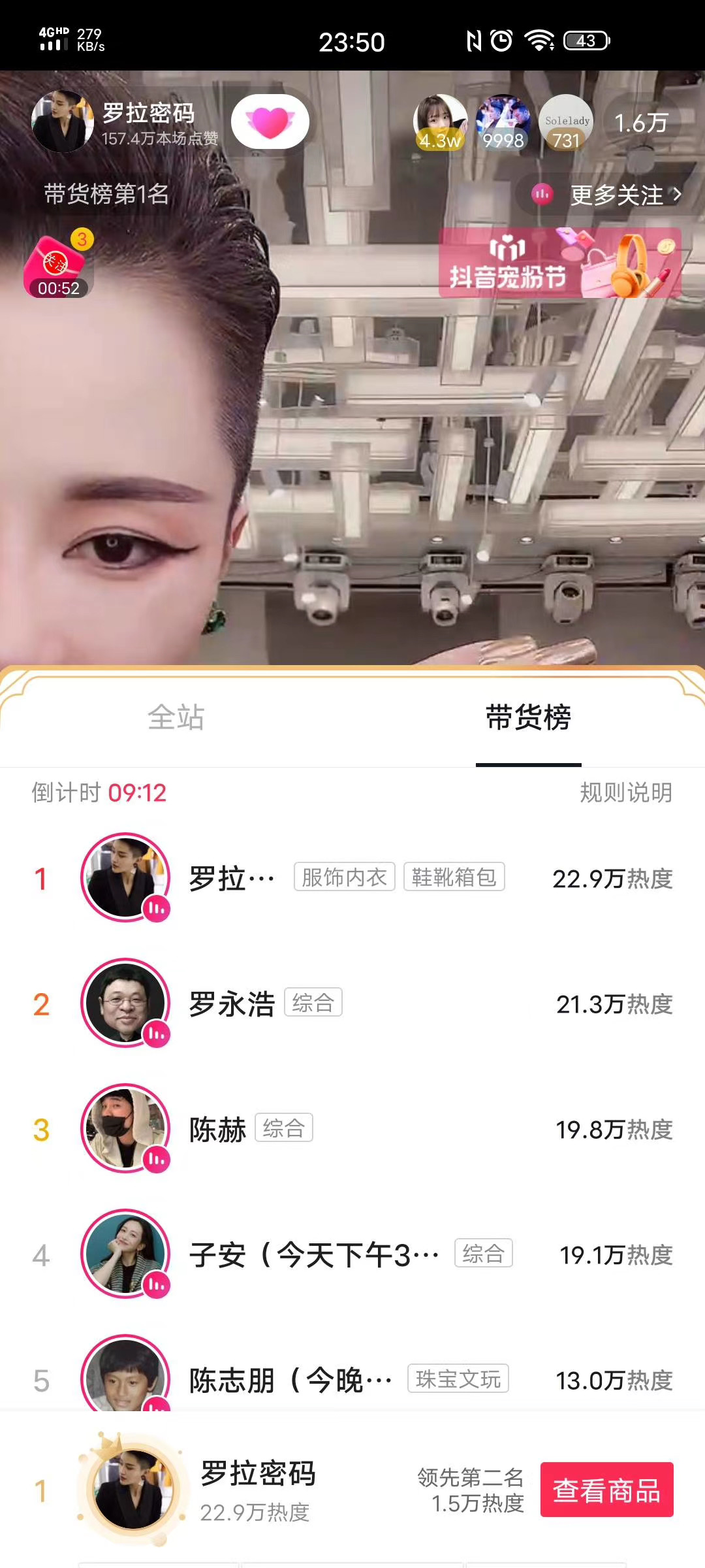 2020年10月15日,抖音美好奇妙夜直播带货榜第一