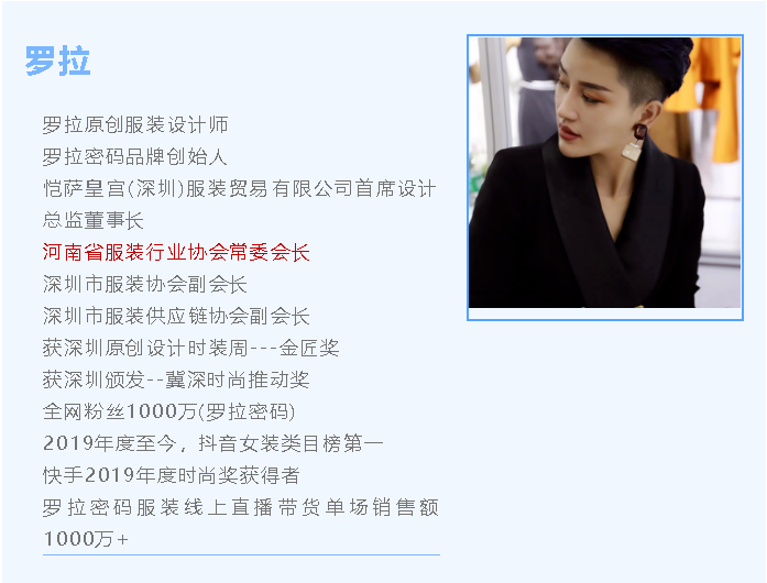 1月16日,2021中原时尚直播节,罗拉女士作为河南省服装行业协会常委会长,盛情接受邀约。为此,罗拉铆足力气,做了充足准备。在选品方面,坚持“严选”“优选”,保证真品、正品、优品,在价位方面,罗拉尽力为粉丝争取“全网最低价”。