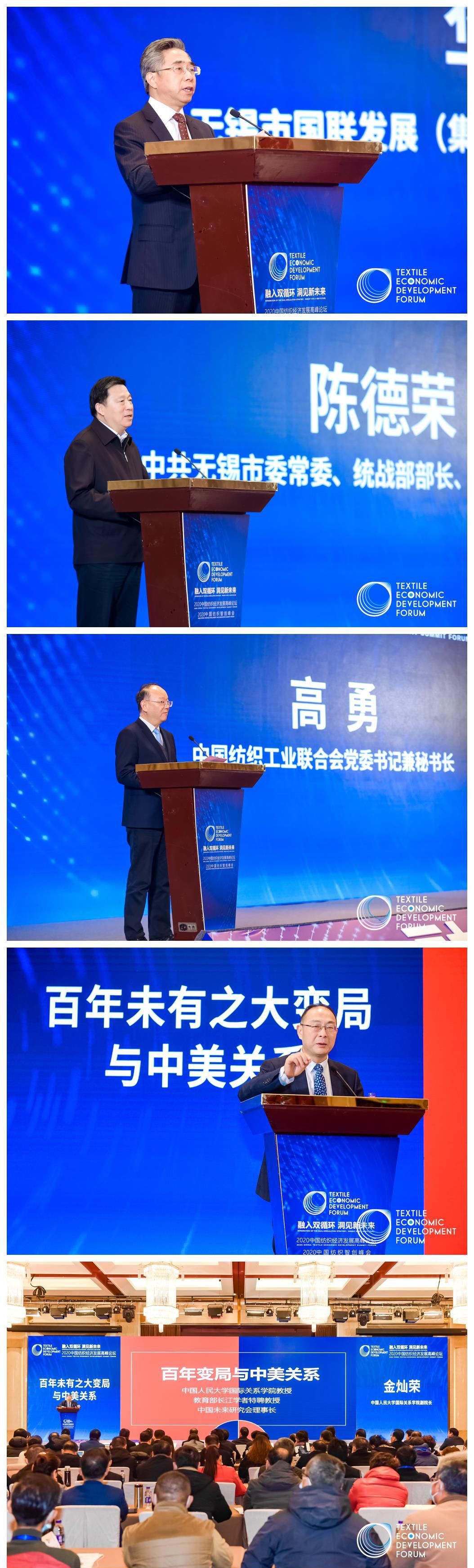 2020年12月17日上午,中国纺织经济发展高峰论坛在太湖明珠---江苏无锡举行。中国纺织工业联合会党委书记兼秘书长高勇, 中共无锡市委常委、统战部部长、市总工会主席陈德容, 工业和信息化部消费品工业司副司长曹学军,无锡市国联发展(集团)有限公司党委副书记、总裁华伟荣出席论坛并发表致辞。河南省服装行业协会秘书长张艳应邀出席。