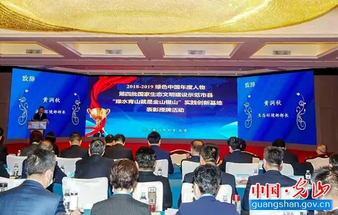 11月30日,“2018-2019绿色中国年度人物”、第四批国家生态文明建设示范市县和“绿水青山就是金山银山”实践创新基地表彰授牌活动在京举办。生态环境部部长黄润秋出席活动并致辞,生态环境部副部长庄国泰主持表彰活动。