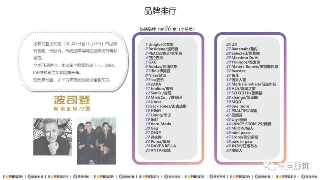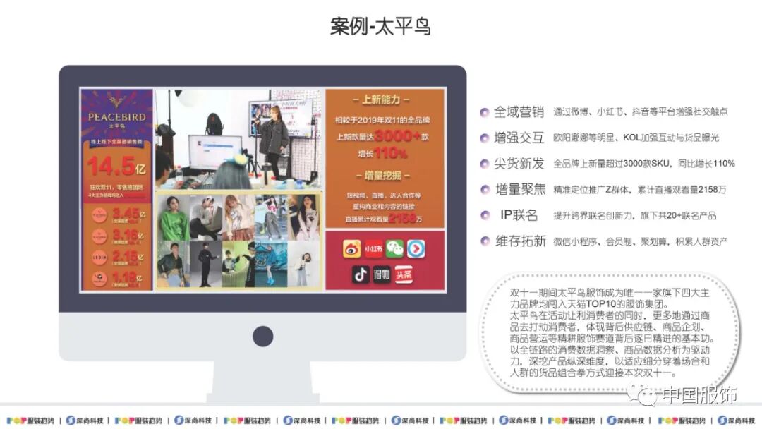 近日,深尚科技联合多家平台发布《2020双十一消费者大数据分析白皮书》,对刚刚结束的“双11”服装服饰品类进行详细的数据分析,围绕爆款品类、热销店铺、营销方式等方面进行行业趋势解读。