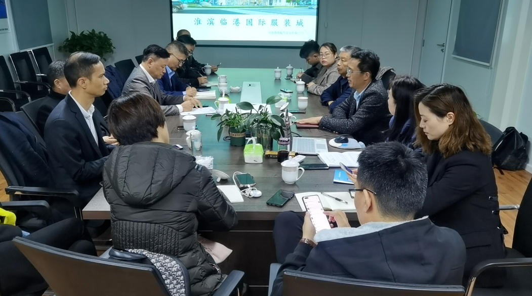 11月21日,考察团一行在刘巡视员等协会领导的陪同下参观考察淮滨临港国际服装城及淮滨港,随后在临港服装城项目部进行座谈。淮滨县招商局长季永华等全程陪同。