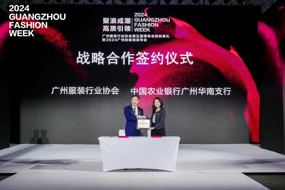 发布会上,广州服装行业协会分别与广东工业大学现代服装产业学院、广东白云学院JIWENBO国际时尚设计学院、河北联宇实业集团有限公司、腾讯广告、中国农业银行广州华南支行签署了战略合作协议。