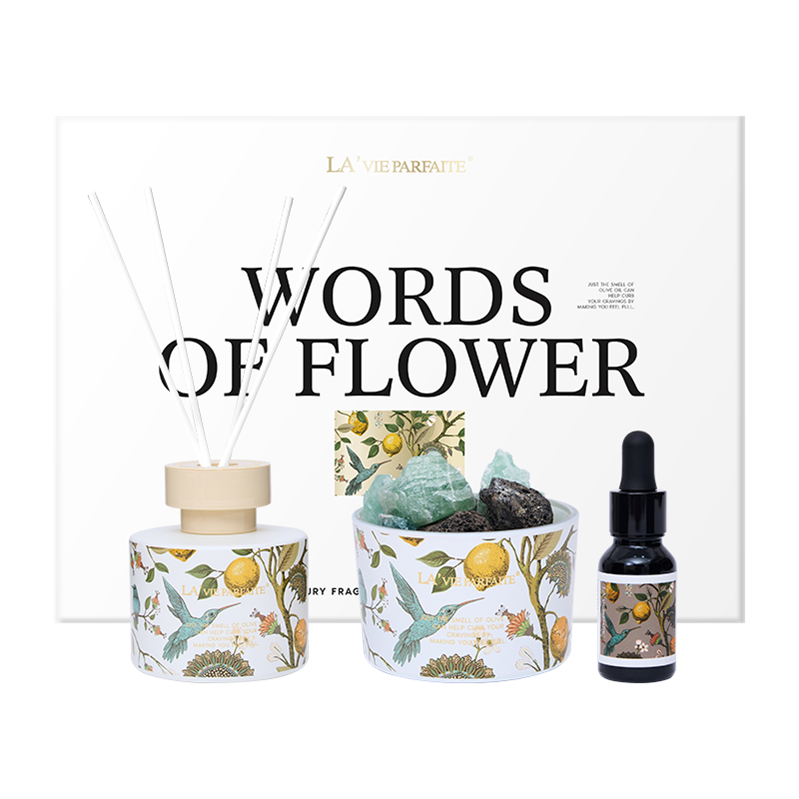 雨后花园香氛系列糅合果香、花香和木质香,意在寻得半日闲的时光里,为你提供美妙的香氛体验。内含自然晶石,未经打磨,都是大自然的鬼斧神工,颇具玩味;瓶器满印特别定制英式古典自然插画;简约轻奢的礼盒包装,送人臻选。