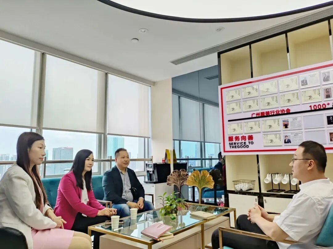 4月24日,我会执行会长兼秘书长张寿英携同秘书处走访我会执行会长单位广州白马商业经营管理有限公司会见白马商会书记黄秋权、秘书长江加诚,我会副会长单位广州市万马龙服饰范总以及我会常务理事单位广州度文服饰有限公司刘总。座谈上,秘书长张寿英就如何将会员服务做到极致展开座谈,除了目前一直坚持的一对一走访拍摄视频,每月两次点对点资源对接会,帮助会员宣传与链接资源之外,我会也有计划落地直播项目以及举办大型活动等举措,丰富服务形式与内容,全方面提升服务质效。在座各位表示对我会的新媒体、直播项目比较感兴趣,并对我会提出宝贵建议,对于未来协会向好更进一步发展充满信心。随后,我会参观了白马服装市场里的广州度文服饰,了解会员单位产品与需求,拍摄宣传视频。