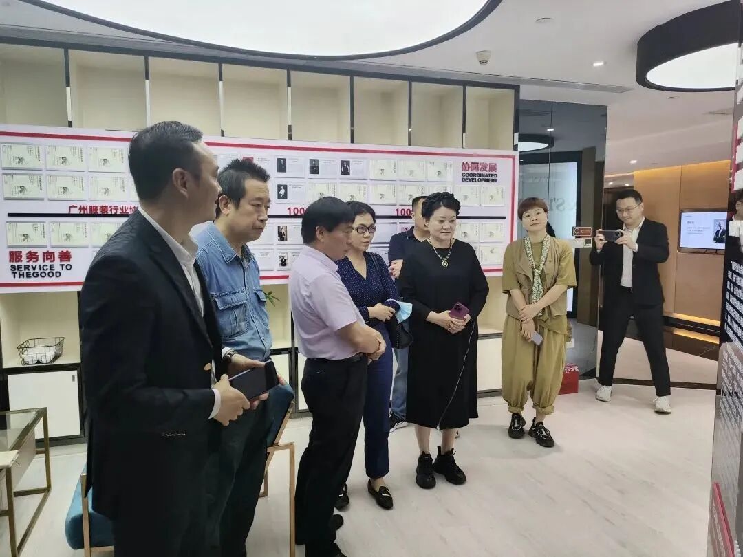 4月24日,广州市委统战部经济处处长(一级调研员)杨学军,二级调研员邹景江、广州市工商联会员工作部部长吴朝阳莅临我会指导。我会执行会长兼秘书长张寿英协同我会顾问中山大学新华学院艺术与传媒学院副院长周国屏、我会副会长百年山牌唐装创始人高山、我会顾问资深时尚服装达人&广州青年商会常务副会长鲍红,我会顾问张吉臣以及广州星露传媒创始人刘小玲负责接待并进行座谈。首先,我会带领领导一行参观我会的文化墙、活动厅以及服装展示厅,秘书长张寿英一边详细说明我会的核心精神、文化建设、协会详情、服务内容等。随后,在会议室举行座谈会。秘书长张寿英向领导介绍我会的四个重点服务,展示我会在新媒体的起步发展,总结近期举办的四场资源对接会,以及对今后重点工作特别是组织举办大型活动的计划进行说明。领导通过初步了解后,非常清晰地给了我会几点建议:第一,我们首先必须明确、清楚广州服协的性质与章程,按照社管局的管理规定和协会的章程,来开展工作;第二,加强广州服协秘书处的管理与建设规范化、条理化;第三,可以根据会员的实际情况,开展差异化服务,商协会运作方式应多样化;第四,整合资源,以结果为导向帮助会员精准链接资源。我会紧跟政府政策和牢记领导讲话,做好商协会角色,发挥好商协会作用。