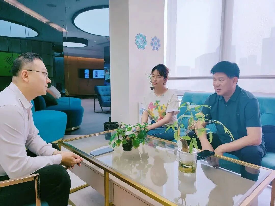 4月12日,中盈盛达·江门莲湖服装双智能科技产业园筹委会主席郑先生到访我会进行交流。我会执行会长兼秘书长张寿英了解到郑先生是通过我们在新媒体上推送的短视频了解我会并过来拜访的,秘书长张寿英详细与郑先生说明我会的情况与服务内容。通过交流,了解彼此情况,双方表示期待在平台上寻求合作,双赢发展。