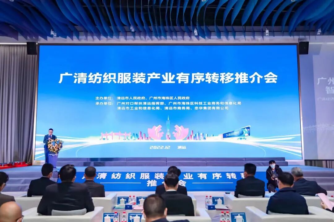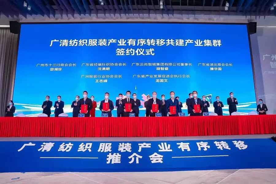 12月11日,我会会长王志峰受邀参加清远市承接广州纺织服装产业梯度有序转移招商推介会暨合作协议签约仪式,执行副会长单位广州千朵花时装有限公司董事长罗杰华,监事长单位广州市高尼奥实业有限公司董事长曾富浩,副会长单位广州市丹昱信息科技有限公司合伙人伍勇,常务理事单位石狮市博雅服饰商标有限公司董事长祖国法,理事单位广州大积家服饰有限公司董事长余龙兵、广州多艺多陈列道具有限公司董事长张钢强亦受邀一同参加。加强相互沟通协调,促进区域协调发展与广州纺织服装产业有序转移清远。