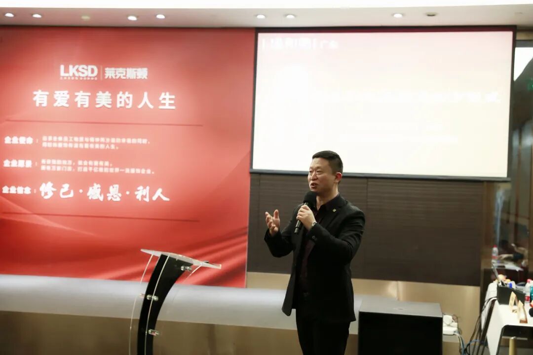 温汉清先生叙述自身创业的艰苦历程,以幽默风趣的口吻娓娓道来,引大家一乐的同时,更引发大家深思。他强调,一个企业能够屹立不倒,一定离不开企业的核心文化。莱克斯顿最核心的文化,第一个,有爱有美的人生。他表示,希望我们的员工有爱有美,我们的产品有爱有美,我们的社会有爱有美,这是企业的灵魂。第二个,修己、感恩、利人。以修身为本,感恩每一个给过帮助的人,再通过自身的努力回馈他人和社会,这才是能够长远发展的道路。
