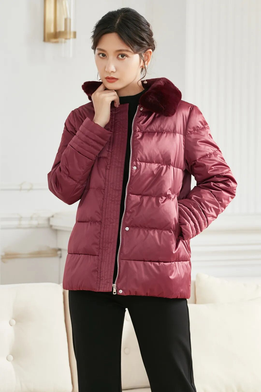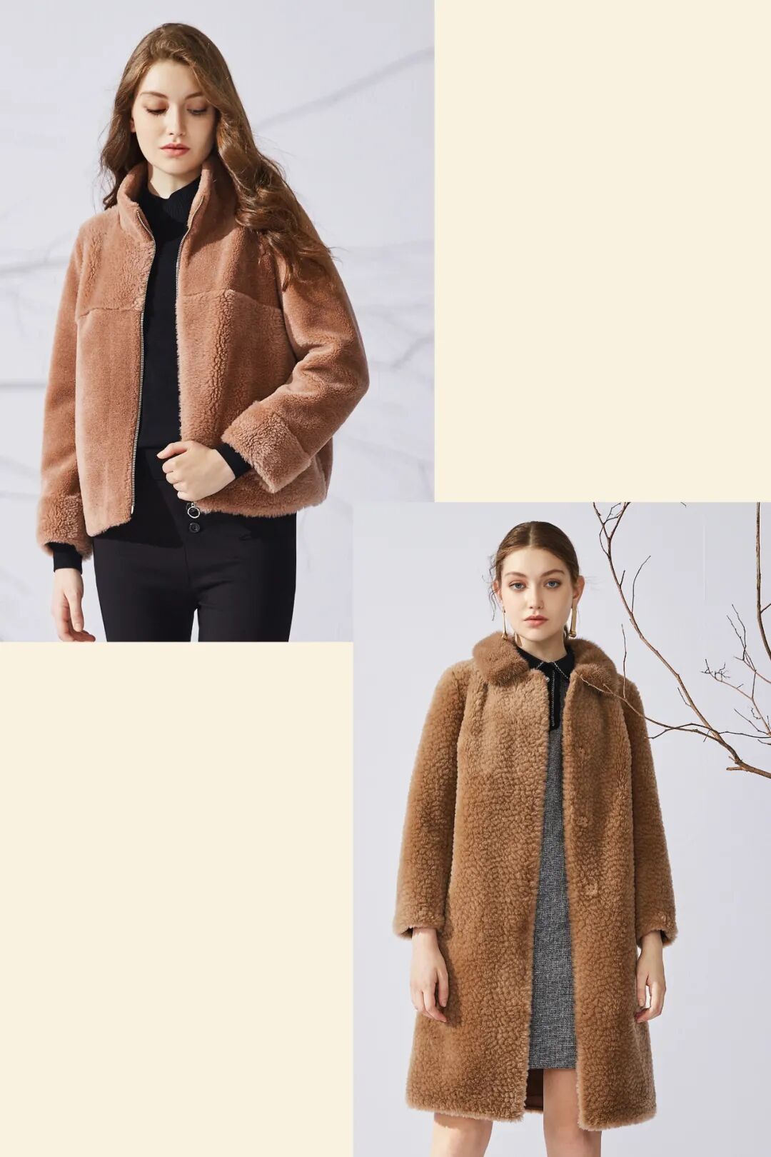 左上:长袖短款羊剪绒外套 6009Q77005 ¥2680