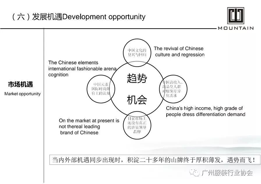 会议上,高山会长从品牌综述、品牌战略及提升规划等三部分内容,极专业地、详尽地为大家分享了山牌服装品牌战略规划。高山会长创立的山牌男装贯通古今精神,立志针线传承千年文明史,裁造中华风尚之服,将中国唐装引向民族生活的风范,穿承文明,穿出信仰!
