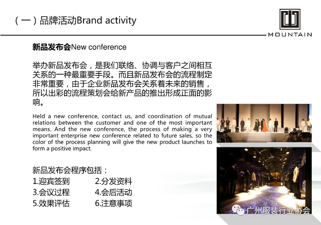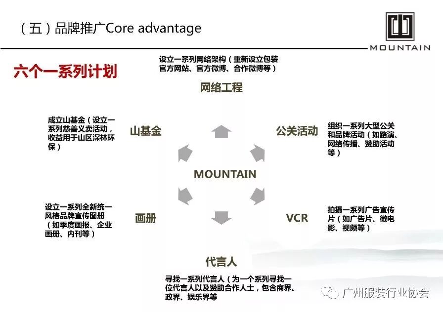 最后,高会长从品牌活动、公关营销、代言提升、媒体传播、品牌维护等方面详尽地阐述了山牌服装的提升规划。