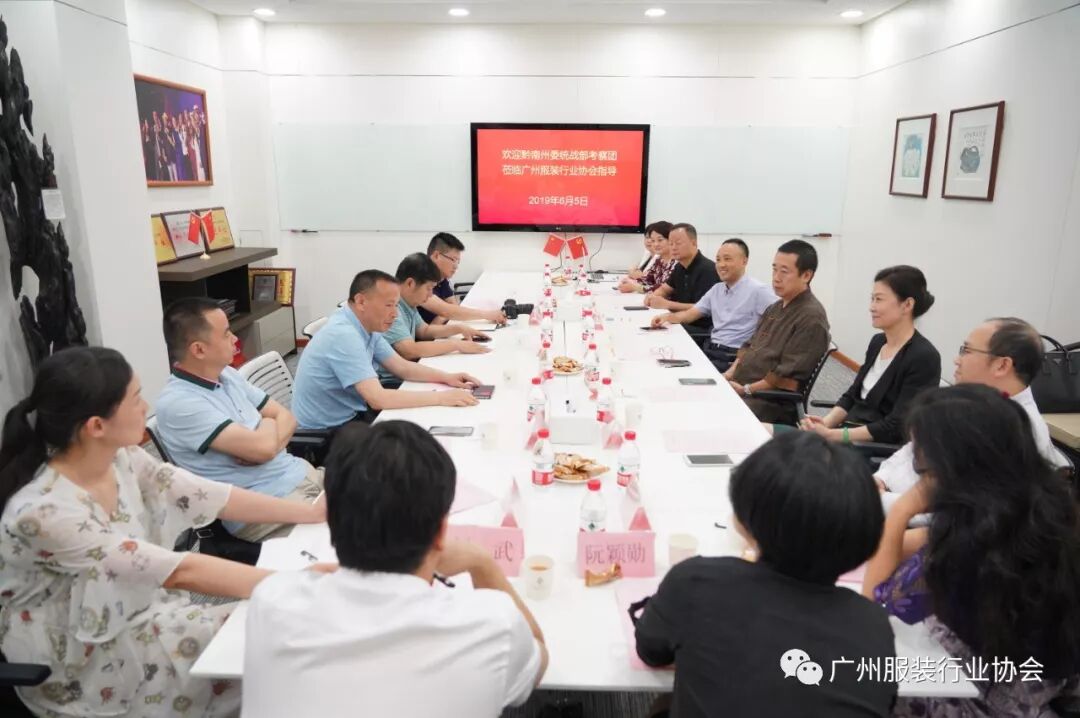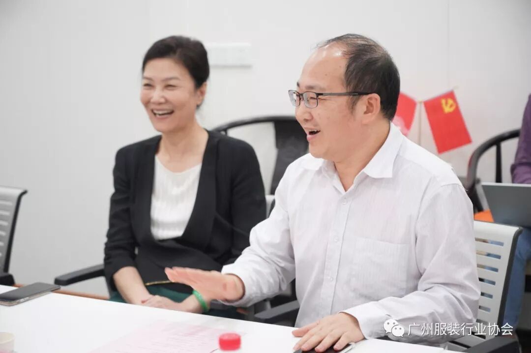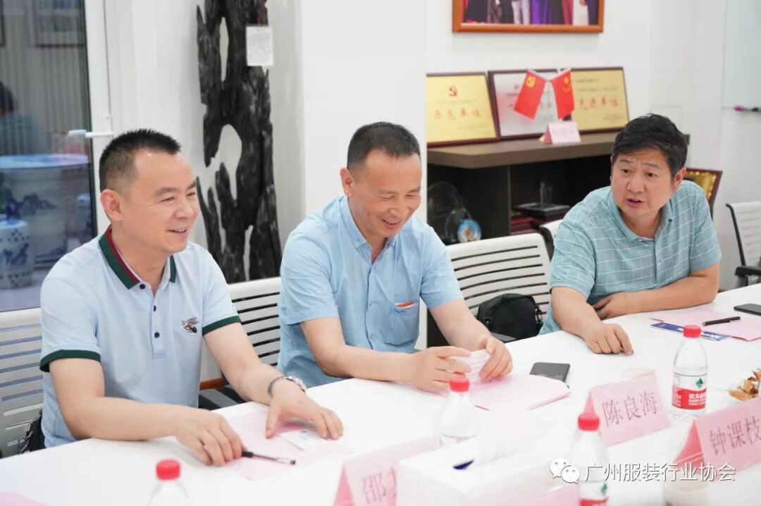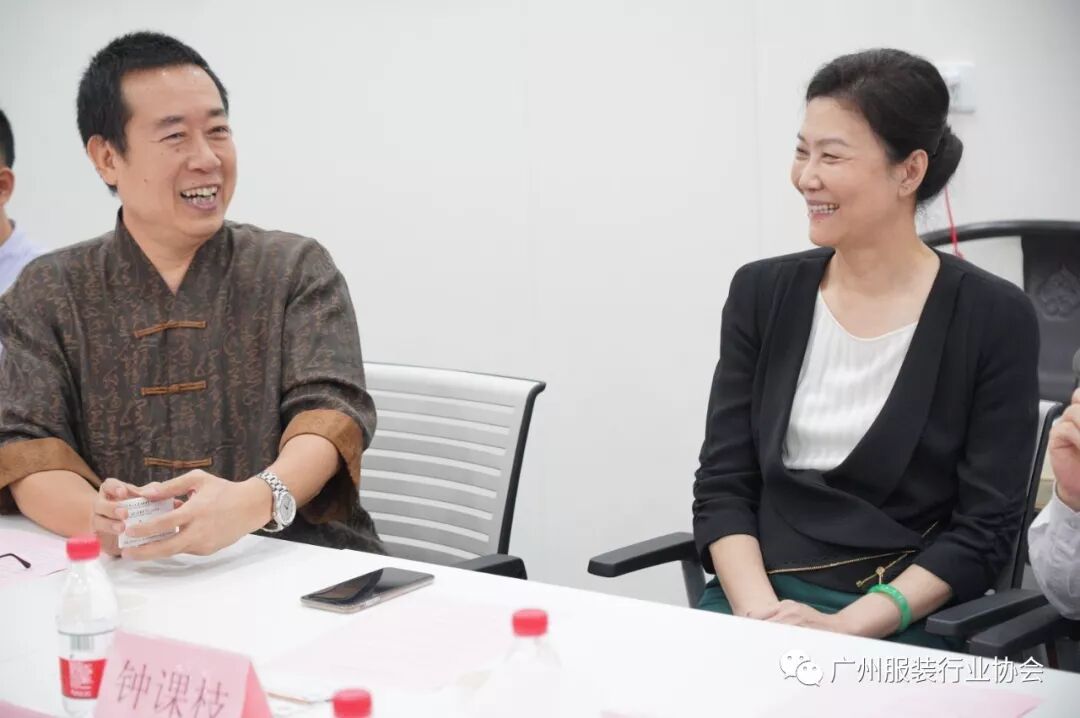 广州市工商联党组成员、副主席余剑春,广州服装行业协会会长钟课枝,广州市工商联会员经济部副调研员阮颖勋,广州市委统战部非公经济处调研员林雪兰,广州市委统战部光彩中心副主任刘武,广州服装行业协会执行会长、名豪集团控股有限公司董事长王志峰,广州服装行业协会顾问、中山大学新华学院艺术设计与传媒学院副院长周国屏教授,广州服装行业协会顾问、广州百医千方传播研究院院长曹长林,广州服装行业协会会长助理、广州铠琪有限公司董事长助理鲍红,广州服装行业协会秘书长叶红英出席座谈会。广州市委统战部常务副部长、广州市工商联党组书记董延军同志接见了与会全体人员。