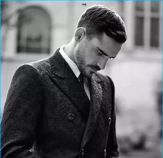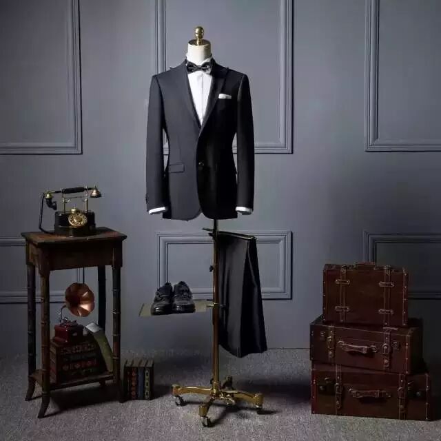 西装以男士穿同一面料成套搭配的三件套装,由上衣、背心和裤子组成。在造型上延续了男士礼服的基本形式,属于日常服中的正统装束,使用场合甚为广泛。