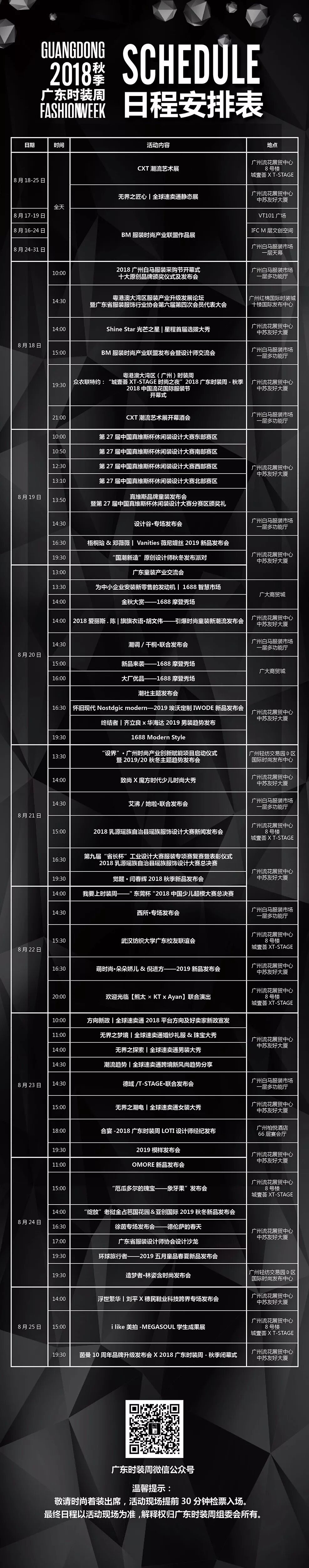 广州服装行业协会作为这次活动的协办单位,妥妥的为大家送上官方日程表,一起来看看哪个是你的心头好呢???