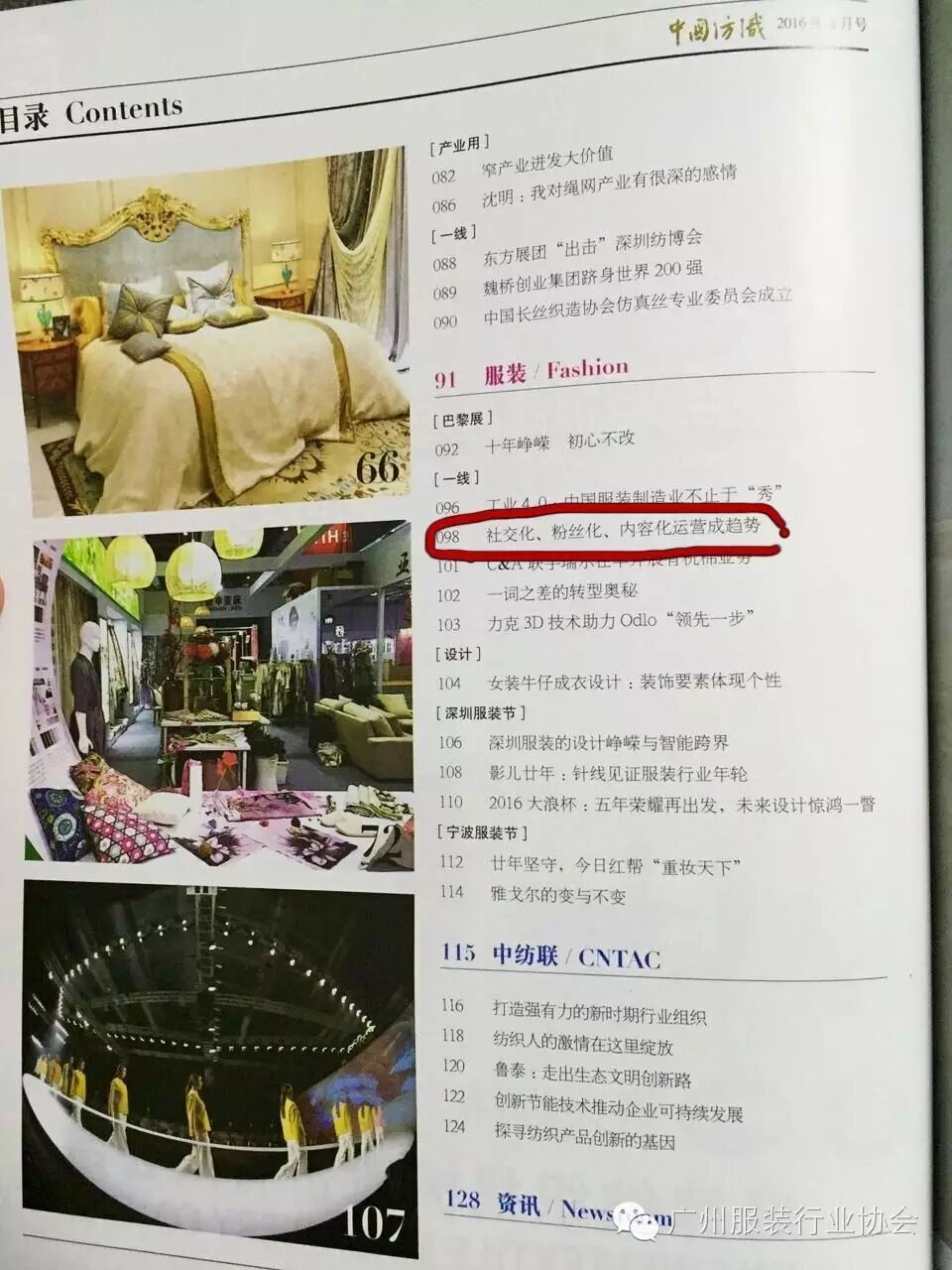 中国纺织工业联合会会刊《中国纺织》8月号文章。作者简介:吴郑宏,高科技人才委全国纺织服装副主任、广州服装行业协会秘书长,广州市白云区人大代表,副教授。