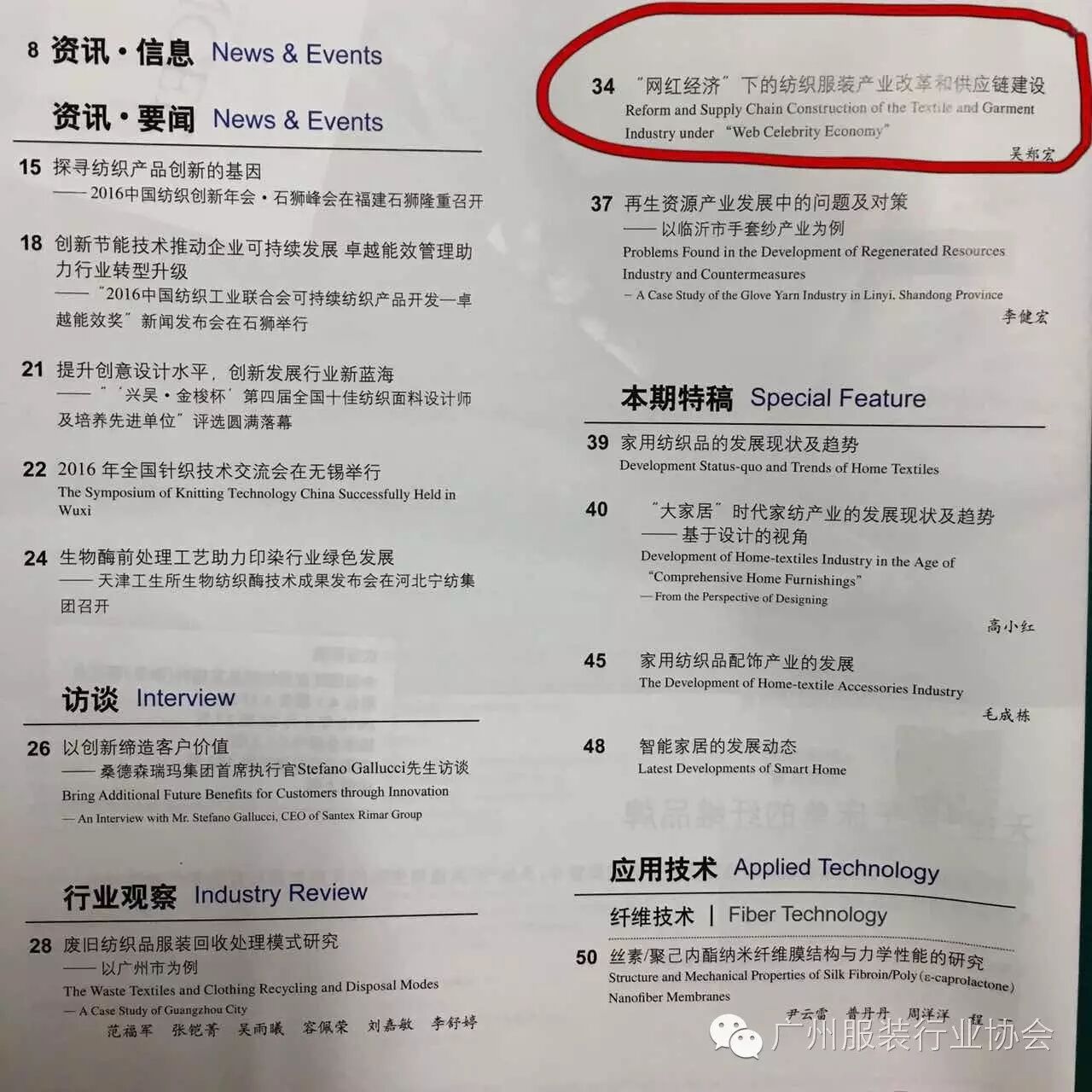 国家核心期刊《纺织导报》8月号文章。作者简介:吴郑宏,广州服装行业协会秘书长,广州市白云区人大代表,副教授。