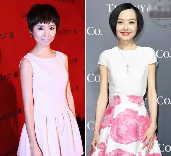 例如周冬雨的这件无袖背心裙,袖边比肩膀关节处还要出去一点,这样就造成人们的视觉点集中在衣服的肩宽那里,再加上周冬雨这个造型披肩发略蓬松,很容易就造成了头跟肩膀同宽的错觉。