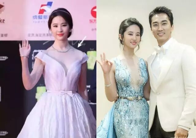 我想说,虽然女神依然很漂亮,但穿上礼服暴露出来的溜肩真的大大降低评分。当然了粉迷们肯定十分不同意我说的,没关系,你们再好好比一比想一想。