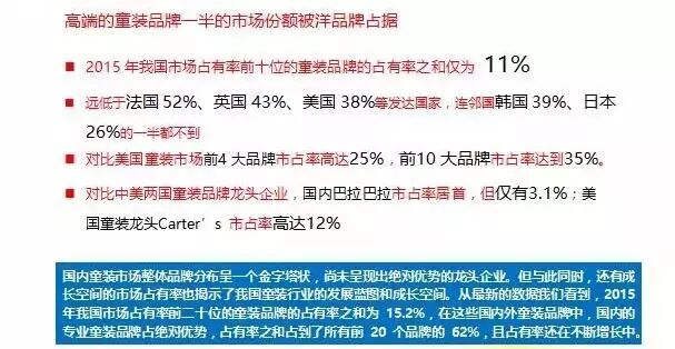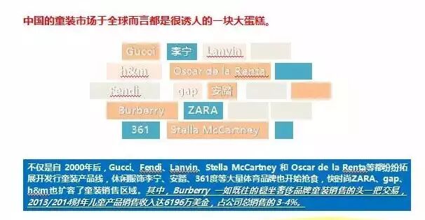 与男装、女装等服装品类相比,我国童装行业起步较晚,童装行业的快速增长让众多品牌开始投去目光,童装成为了服装行业争抢的最后一块蛋糕。
