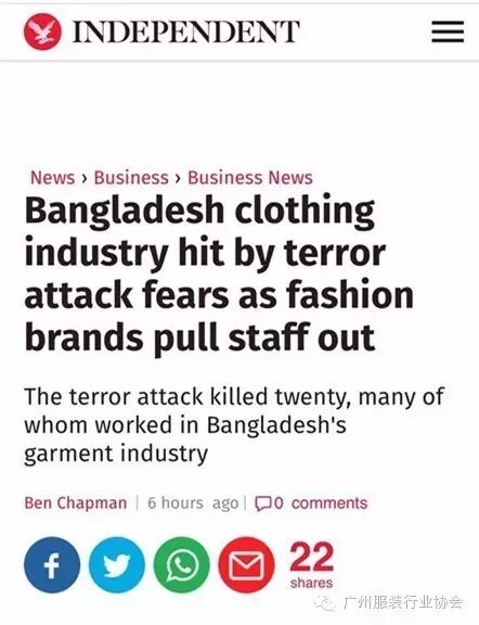 孟加拉国一度对世界经济来说是一个无足轻重的穷国,现在却已经成为一个出口大国,在全球服装出口业当中的地位仅次于中国。服装业对孟加拉国的经济至关重要,占其制成品出口的80%,创造了超过400万个就业岗位。但上周五在首都达卡发生的一起恐怖袭击事件,造成18名外国人两名当地人死亡。孟加拉国政府不愿承认IS或“基地”等恐怖组织在国内渗透,担心“吓跑外国投资者”。但这场可怕杀戮却引发对暴力加剧将危及孟加拉国庞大服装产业的恐惧。