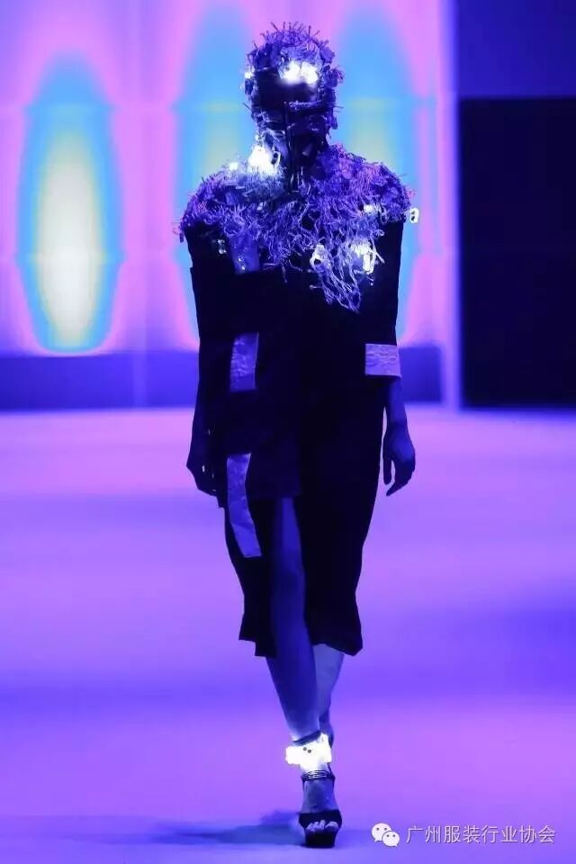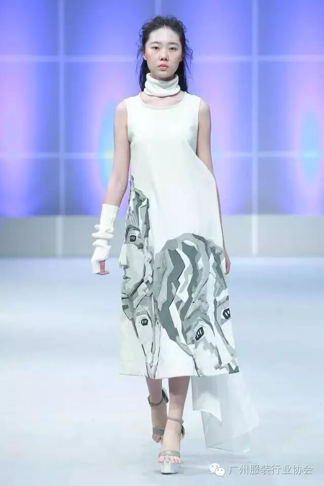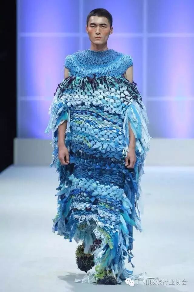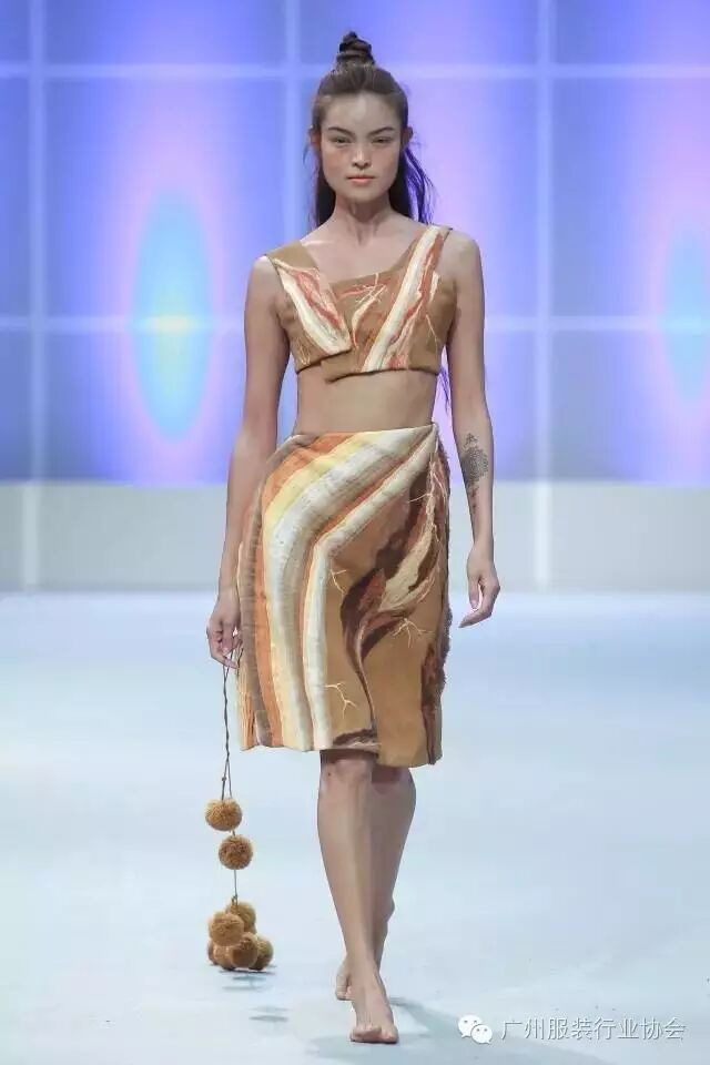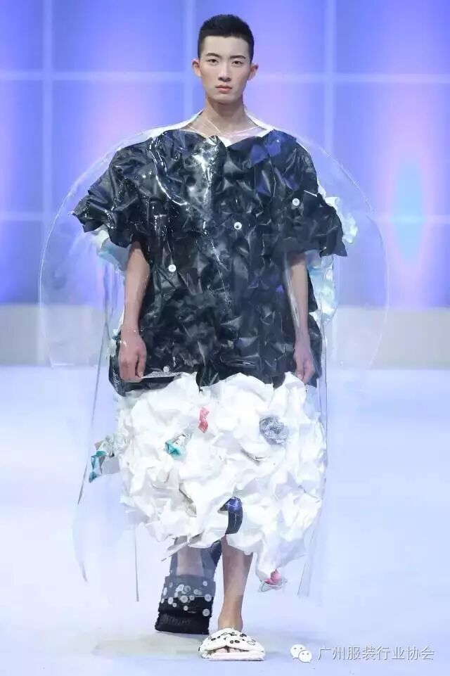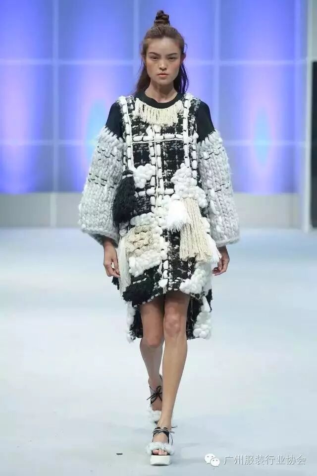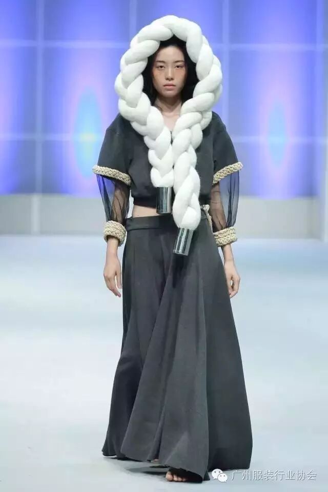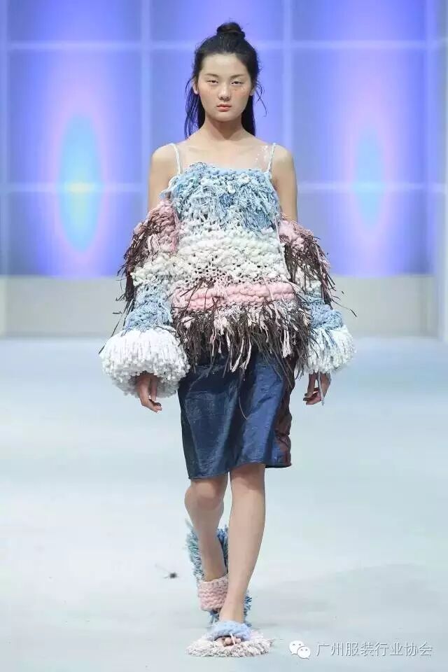 本次汇演的学生作品,有很多侧重于面料改造的方式方法运用,比如镂空、浮雕、编织、手绘、非服用材料的使用等等。多从传统和文化中撷取灵感,譬如独具岭南特色的窗花,广东的早茶文化,中华民族的云纹图案,民间传统的门饰文化,红红火火的醒狮年文化,折纸艺术,大地肌理,洗衣店元素……都能信手拈来,变化制作成衣。