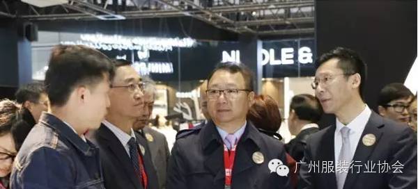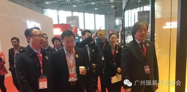 上海国家会展中心,中国服装协会孙瑞哲、陈大鹏等领导来到现场巡馆,助阵CHIC,图分别为各领导来到杉杉男装、红豆男装、特步儿童、太平鸟童装品牌Mini Peace等展位,听各家企介绍业。