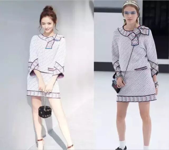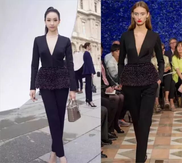 在这次巴黎时装周当中宋茜身穿2016Dior春夏成衣款,看上去干练又时髦,可不明白的是为什么要肉色打底在里面,一下子又离fashion好远好远了……