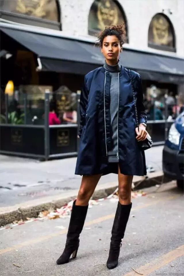 今年加大版的夹克大受欢迎,小个子俄罗斯名媛,穿着这加大版的夹克外套+过膝靴,大片风范满满,即使内搭简单的款式穿上这加大版的夹克也会变得不简单。