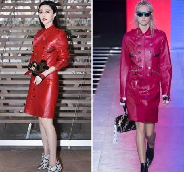 除了小S之外,当然还有人发挥失常;好比范爷在这次的巴黎时装周当中,穿着正红色皮革大衣,在局部看范爷猫眼妆很美的,但整体来看范爷好像有点。。。。。。