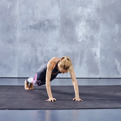 3、第三个动作以俯卧撑的方式,不过力量重心放在上半身。