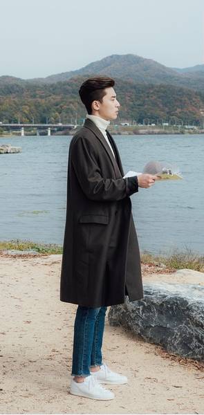 前两月大热的韩剧《她很漂亮》,男主身穿的改良款大衣可是迷倒了女主,灰黑色大衣+高领白色毛衣+九分撕边+白球鞋=女生心目中的男神。再者,风衣式大衣,如此暖心的造型,也是女主心头大爱。里面衬个毛衣或针织衫搭配,丝丝文艺气息。在著名的长腿欧巴扎堆的《继承者们》自然也少不了大衣的频频亮相。在首映式时,男主李敏镐穿了一件暗纹大衣,内搭背心马甲+白衬衫,一招手台下的女生已经控制不住各种尖叫了。在剧中,霸道富二代李敏镐更是造型不离大衣。如这件蓝色调大衣,内搭同色高领毛衣。像这类同色系搭配是比较受欢迎的,女生会认为穿蓝调的男生,比较高贵得来又柔和可亲。这种大衣长度一般在膝盖或膝盖之上的3厘米处(不过因人而异),花少给大家提个醒,穿这种大衣可以把裤脚卷起来玩点小花样。或者像《她很漂亮》,男主穿九分的直筒西裤(略露一肉丝)。大衣不仅能显造型,有些微胖型身材的男士的还可以藏一下肉。如果是轻熟男,酒红色、棕色的暗色系大衣会更适合你,很有优越质地的感觉。若是穿衣风格走潮男类型的,你可以大胆任意尝试,比如像李钟硕这款亮色系的长大衣。又或者款式可以改夹克式大衣外套。不用扣扣子,拉上去瞬间完成。