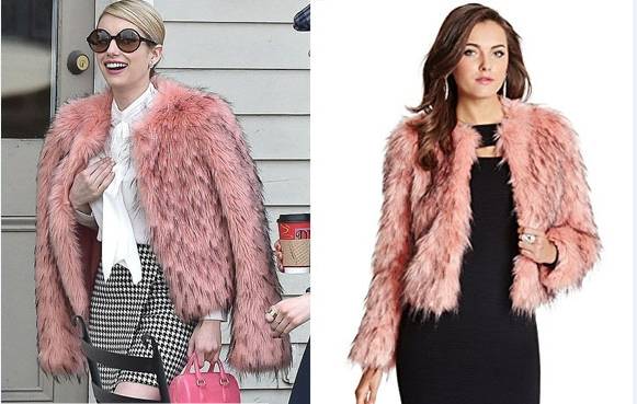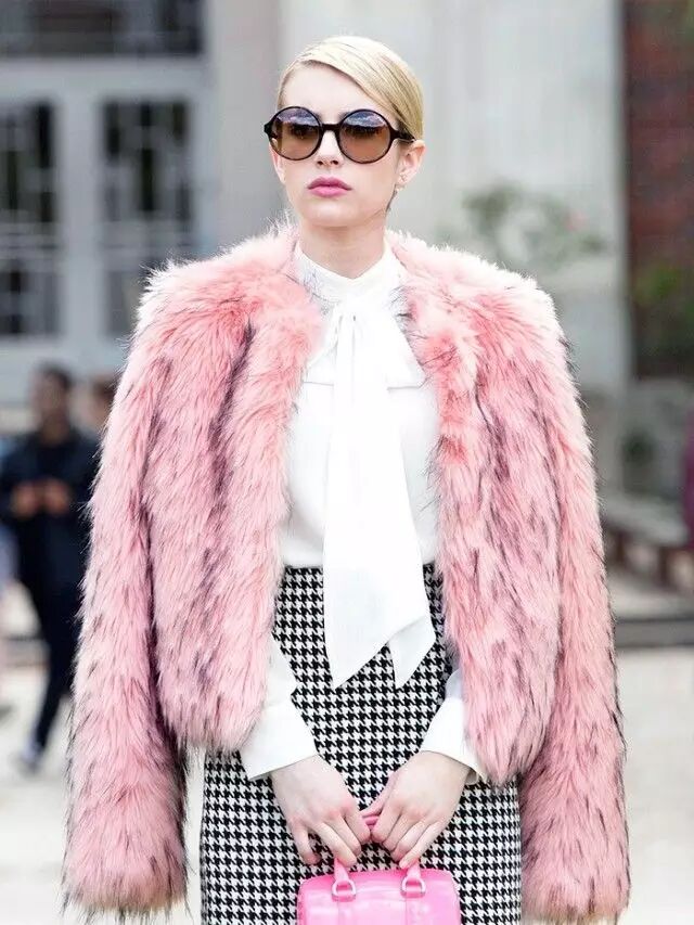 小罗丝在剧中就是标准女王范,粉粉的皮草外套,内搭白色雪纺衬衣和一条不规则千鸟格短裙,再拿个小小的玫红手提包,好一颗少女心的女王啊!差点忘了,女王出行不可以少了墨镜!这件粉嫩嫩的皮草来自guess by marciano,在官网上看到模特穿得比较实用一点,而小罗丝穿得比较名媛范。在年前入手这款不就可以粉嫩嫩的过个好年。如果觉得暖冬穿皮草出行会有点夸张的话,换件小香外套就ok!小罗丝在剧中,也玩了好几回合的“粉色大战”,菱格抹胸式的粉白连衣裙,配上大大颗的珍珠项链玩可爱型高贵名媛风。