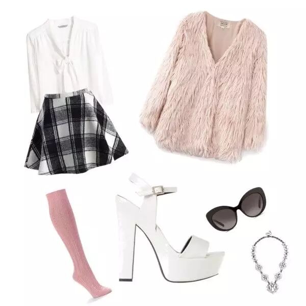 再来浅粉色毛绒绒外套,内搭雪纺蝴蝶结衬衣,配上宫廷花纹式A裙,女王也会走知性粉嫩风吗?