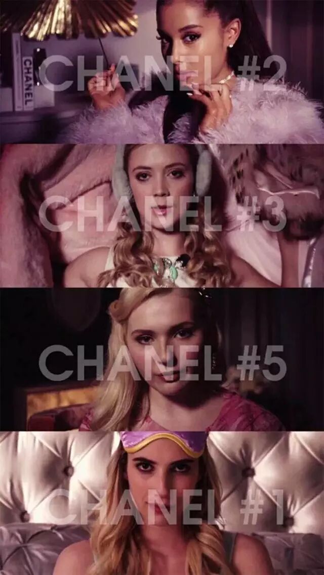 此剧的女主角Chanel1号是由小罗丝扮演,她之前已在《美恐》饰演毒舌的过气明星,而在新剧里也是继续她的老本--毒舌+大牌。不过她的身份不再是女巫,而是女王。剧情的开多她就有三个跟班,分别是CHANEL2、CHANEL3、和CHANEL5,其中CHANEL5饰演者可是时下美国新生代歌手爱莉安娜·格兰德(Ariana Grande),只可惜她在这部剧只待了4集。而她的个人衣柜跟《小时代》顾里的衣柜一样大,不过小罗丝衣柜风格就比较欧式一点。
