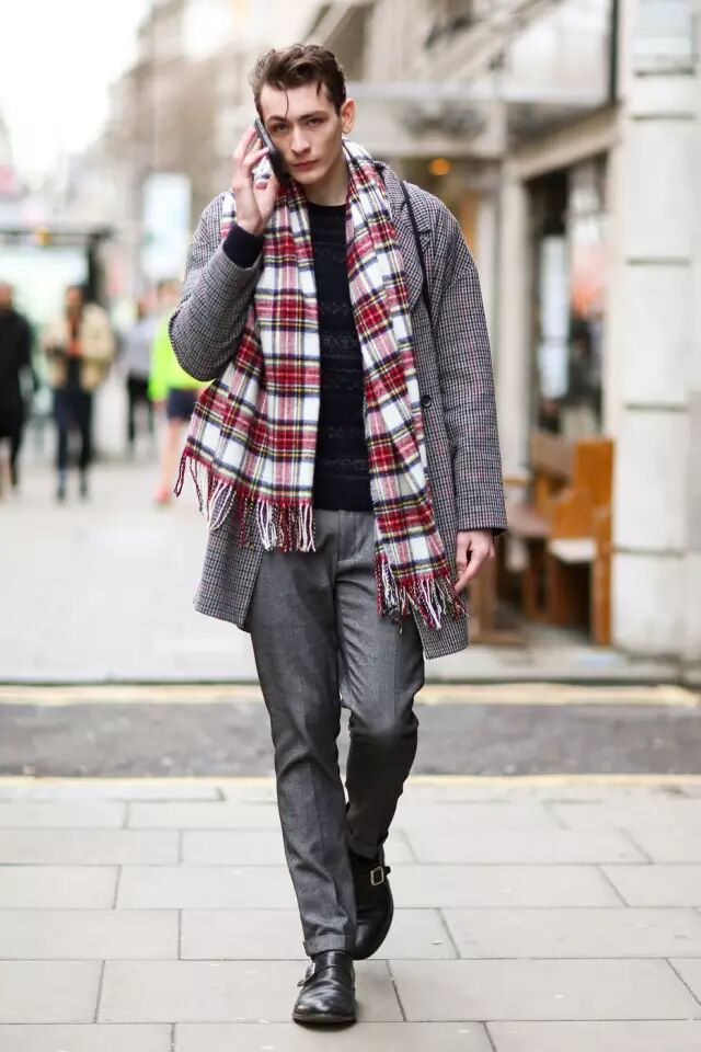 格子纹的混搭是秋冬的大热,之前比较常看到女装的演绎,其实男生穿格子也是英伦风十足,挑一条偏中性的格纹围巾,两个人都能用哦。