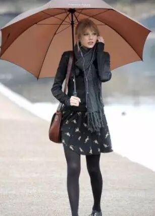可以像小清新Taylor霉霉那样打伞围围巾,也可以直接把围巾裹头避雨保暖凹造型。