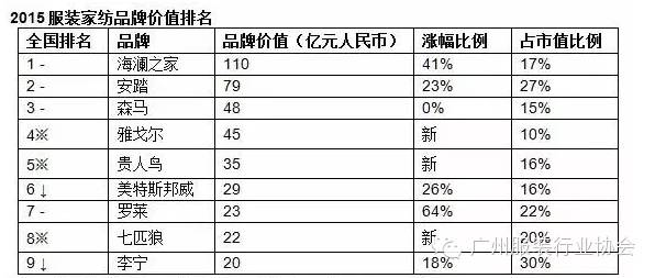 除了市值的不断增长,对于海澜之家的品牌价值,胡润也表达了高度的赞赏,他坦言:“胡润百富每年也发一个服装家纺品牌价值榜,在这里面,海澜之家毫无疑问是排第一的。110亿,它的品牌价值是占总市值的 17%,而且比安踏、森马、雅戈尔、贵人鸟、七匹狼、李宁等品牌价值都要高一些。从这里我们可以看到,这些民营企业家在中国做服装品牌是做得非常优秀的。”
