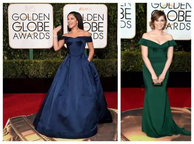 而当年让我们都希望他们“在一起”的CP党“Rose"&"Jack”两人,一个身穿Amarni,一个身穿Ralph Lauren,都获得了金球奖,这是小李子第三次获金球奖,小李子现在就差一个小金人就完成他人生的又一大心愿了。(还有一个心愿就是他可以瘦下来)没获奖的也不能抱着打酱油的心态随便找件礼服出现在红毯秀,而要清清楚楚知道自己的身材,然后再来选择礼服才能在这场秀当中没赢奖也要赢个喝彩哟~同为鸡心领露肩款式的礼服,只要裙摆不同,穿出来的效果都会不一样,像右边的蕾切尔·布鲁姆穿得是很修身的款式,整体效果看上去上身重下轻,而左边的吉娜·罗德里格兹穿得裙摆是A型呈散开状,视觉效果整体是放在上半身,像尊稳稳落地的花瓶,看上去的效果明显比右边要好很多。抹胸式礼服在红毯秀当中是最常见的,不过近几年的抹胸礼服不断改朝换代,廓形也变得五花八门,看上去简约大方,可把它穿在身上是很挑人的。新普的小龙女姐姐陈妍希,什么都好就是肩比较宽大,在微博之夜再来一款抹胸礼服,这一缺点就暴露无遗,显得虎背熊腰了。蜜蜜还是觉得抹胸礼服还是是适合肩窄的艾米·罗森(Emmy Rossum)这霉女。