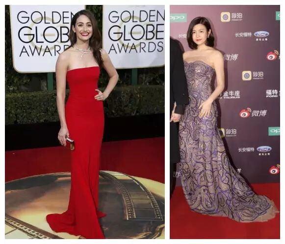 奥斯卡前奏金球奖昨天颁奖,中国的2015微博之夜上周末举行,各位明星谁拿奖?!蜜蜜也管不着,今天要聊的是中外红毯秀PK之战,像这种次重量级的红毯秀看看哪位明星把礼服穿得最好~次重量级?没错,金球奖可不是奥斯卡、金棕榈,微博之夜也算不上时尚风尚大奖、Met Gala,所以有些穿得很正式有些略轻松,也是很微妙的呢,该穿什么,拿捏起来也不容易。穿得认真点,有人会说你肯定会拿奖吗?就这么想拿这个奖?穿得稍随意么,也有人会说此地无银,总之吧,不如在最顶级的场合,就一水儿地穿得最隆重来得简单易行。