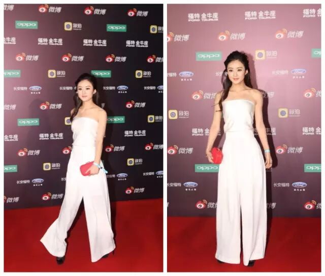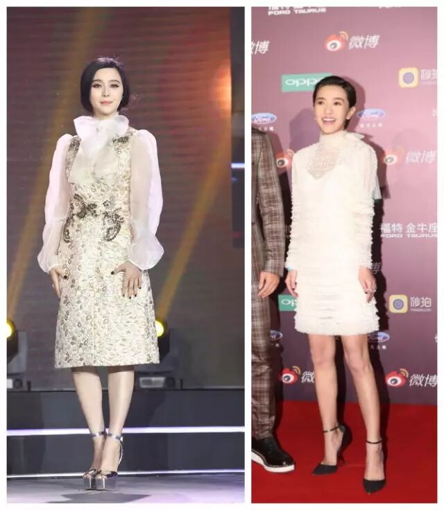 虽然今年阔脚裤在时尚圈里热度还在蔓延之中,但在红毯秀当中要独领风骚的话好像份量略欠,而且还要款式、搭配都要选对,要不然就会像赵丽颖这样身材比例被分成四五等分,身高不足还要死马当活马医,硬生生地套上这笨重的马蹄子?!😨同在微博之夜,同样自称是女王级别的“范爷”和“顾里”都改走浪漫主义小清新系列,一改女王范,还很小女子情怀地在脖子上打个蝴蝶结。蜜蜜认为是“顾里”胜出,在脖子后打个蝴蝶结看上去并不繁琐,反倒“范爷”把蝴蝶结放在前面,脖子都看不见了。“顾里”选择尖头高跟鞋看上去也清爽许多。而“范爷”则永远不改她的马蹄高跟鞋,真要晕了,其实她也不矮,为什么总要穿这种笨重笨拙的砖头鞋呢?当晚周冬雨也是穿着短打小礼服出席,一贯的小清新风,这款小礼服看上去挺适合周冬雨的,不过裙身的右半部分看上去像被人扯掉一半,露出白色的打底裙身,倒也别致,楚楚可怜。而相对眼前一亮的就是张蓝心这一身短打礼服,简洁爽利不繁琐、凸显性感好身材。但脚上这双鱼嘴高跟鞋则有点画风偏移。相比之下娇小的女生这次在红毯秀都很~完美~比如,宋智孝身穿宝蓝色的丝绒长礼服 ,而小莎则身穿深V星星点缀长礼服,还很小心机的秀了一下小蛮腰。最重要的是她们在穿长礼服的同时记得把腰带给系上了。小莎还很厉害的把她的男漂搬出来当配饰为自己加戏加码,真是一位聪明的妞啊~