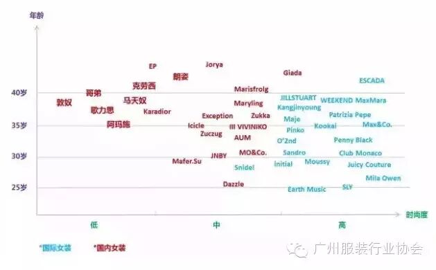 女装市场上的国际品牌大多来自欧美、日韩国家,国内本土品牌则大多来自广州、深圳、杭州、北京、厦门、武汉等。从目标客群的年龄定位来分类,可以将女装品牌分为大淑、中淑以及少淑三个年龄定位。少淑女装市场范围较广,来自日韩较多,如今被快时尚品牌瓜分掉不少的份额,尘埃基本落定,因此本文希望更多地探讨中淑、大淑女装市场上国际国内两大品牌阵营的竞争。