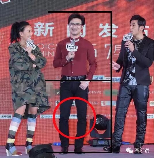 周董身材比例上比汪大哥好一点,除此之外周董头颅比较小,在视觉上看上去没有那么突兀。汪峰比例身长腿短,应该黄金分割的0.618却变为金龙鱼油的1;1比例。2011年汪峰在北京举办了全新个人专辑《生无所求》的首唱会,那英、杨澜、王全安、陈建斌、张楚等好友前来助阵。向来嘴上没把门的那英在现场大曝料称汪峰小心眼控制狂,还吐槽他是罗圈腿,需要在皮裤里腿部塞棉花,需要换造型。