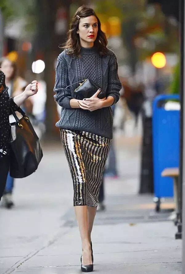 包臀铅笔裙是女性气质的绝佳代表,无论及膝还是略长的款式都好搭配,那件平凡的毛衣,也因为它变得“优雅”▼