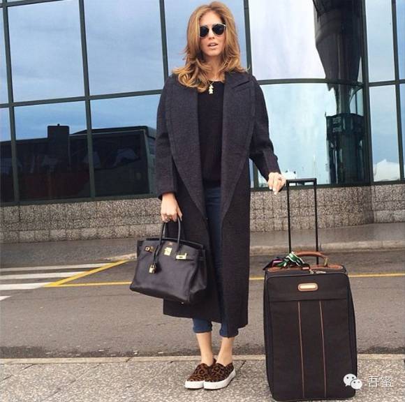 彭麻麻机场look,灰色大衣加上白色过膝裙,配上圆点丝巾搭配。简直是干练标竿。而今年灰色系服饰也是热得不能再热了。还不快入手一件演练出差范。